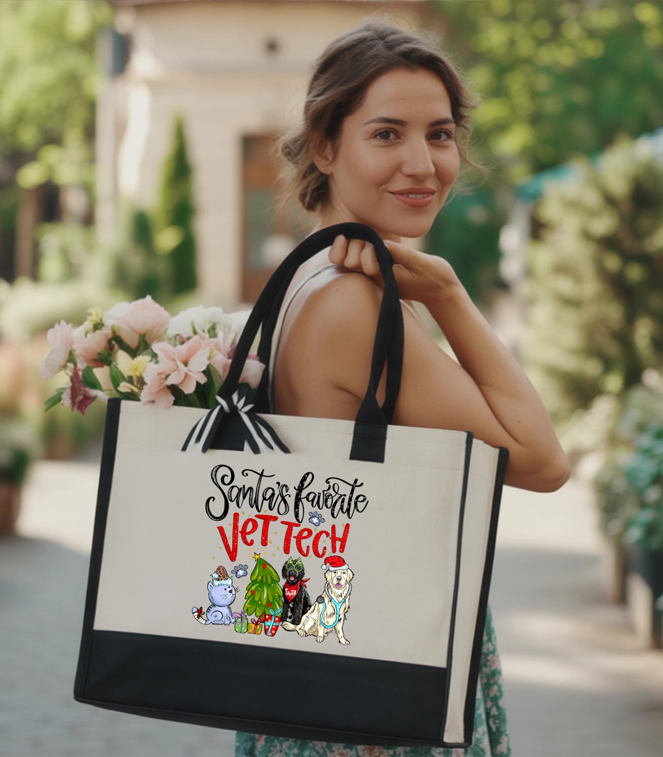 Vet Tech Christmas Tote Bag, Santa's Favorite Veterinary Technician Gift