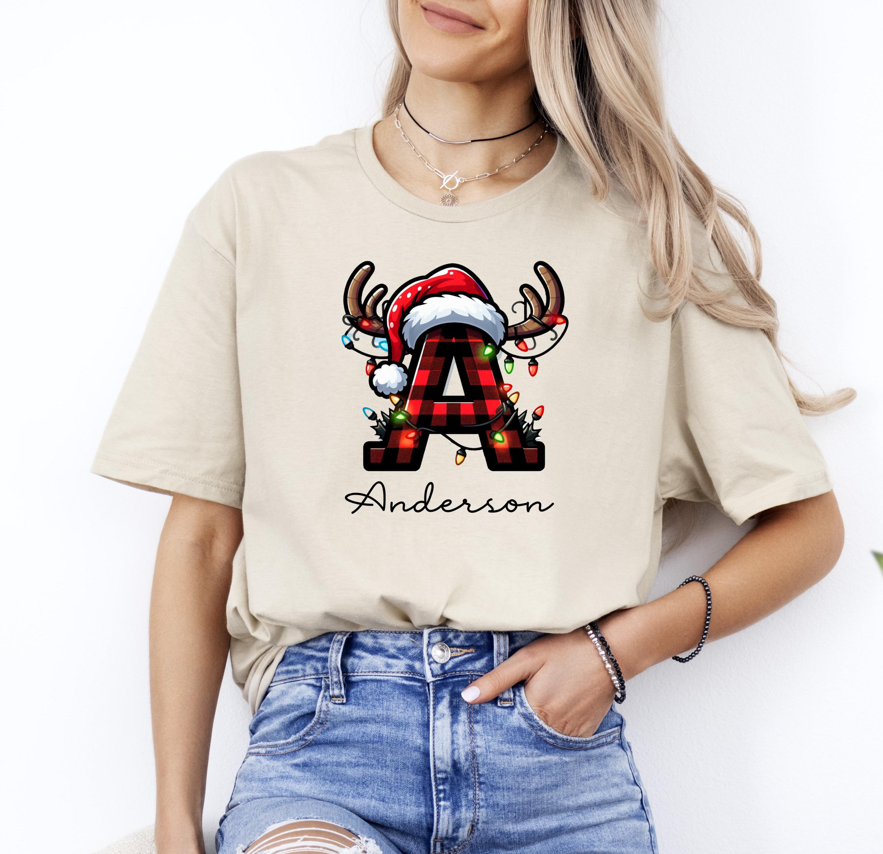 Custom Christmas Initial T-Shirt, Personalized Name Xmas Tee