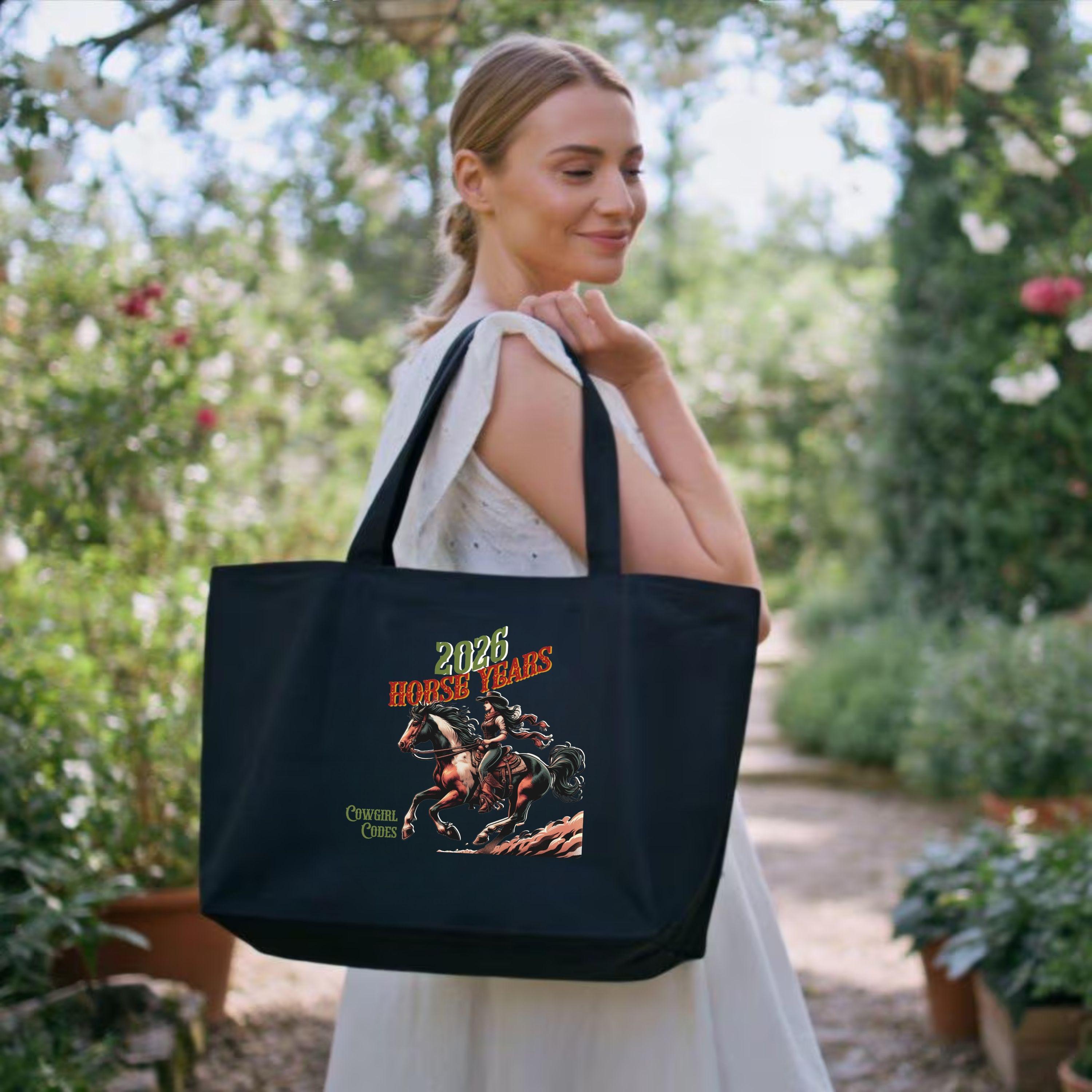 2026 Horse Years Cowgirl Tote Bag, Western Rodeo Canvas Shopper