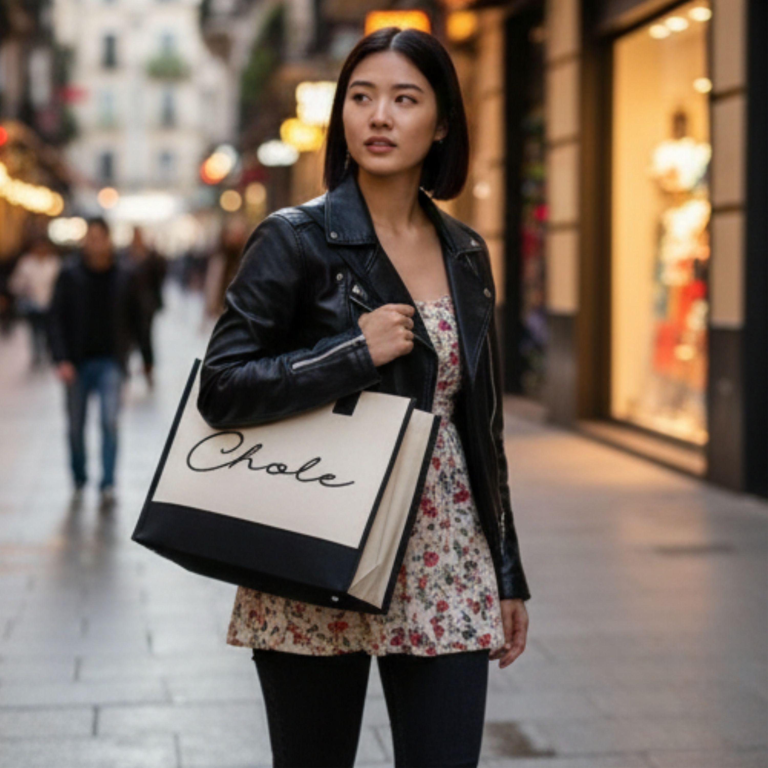 Custom Floral Initial Tote Bag, Personalized Family Name
