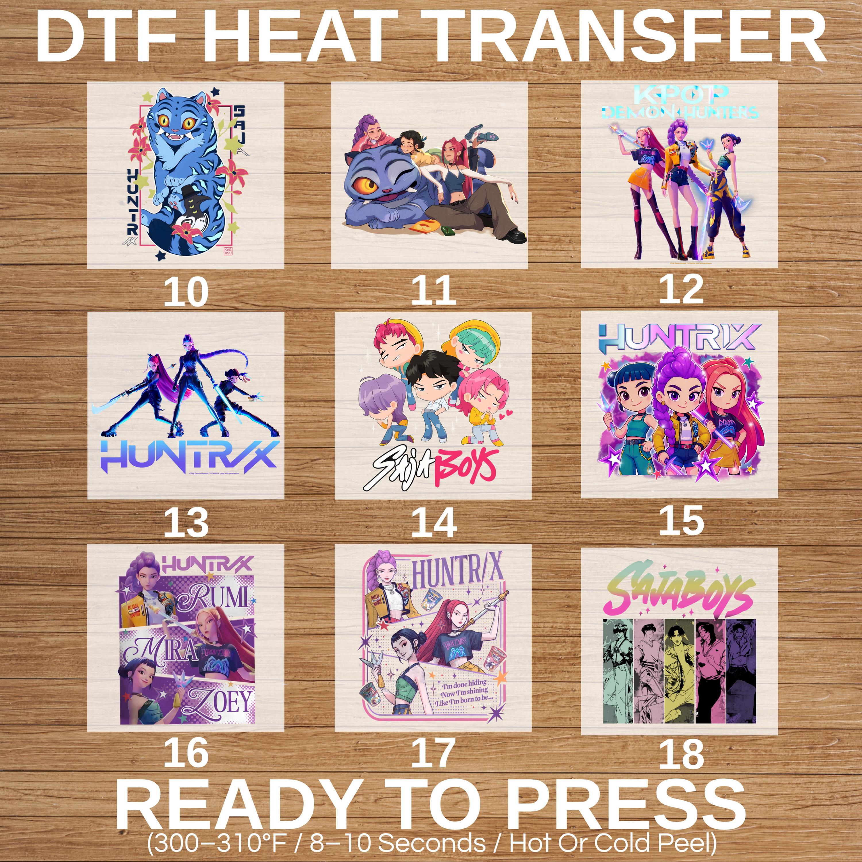 Kpop Demon Hunters Dtf Transfer, Huntrix Ready to Press Transfers, Direct to Film, Anime Characters Heat Printing Dtf, Dtf Printing