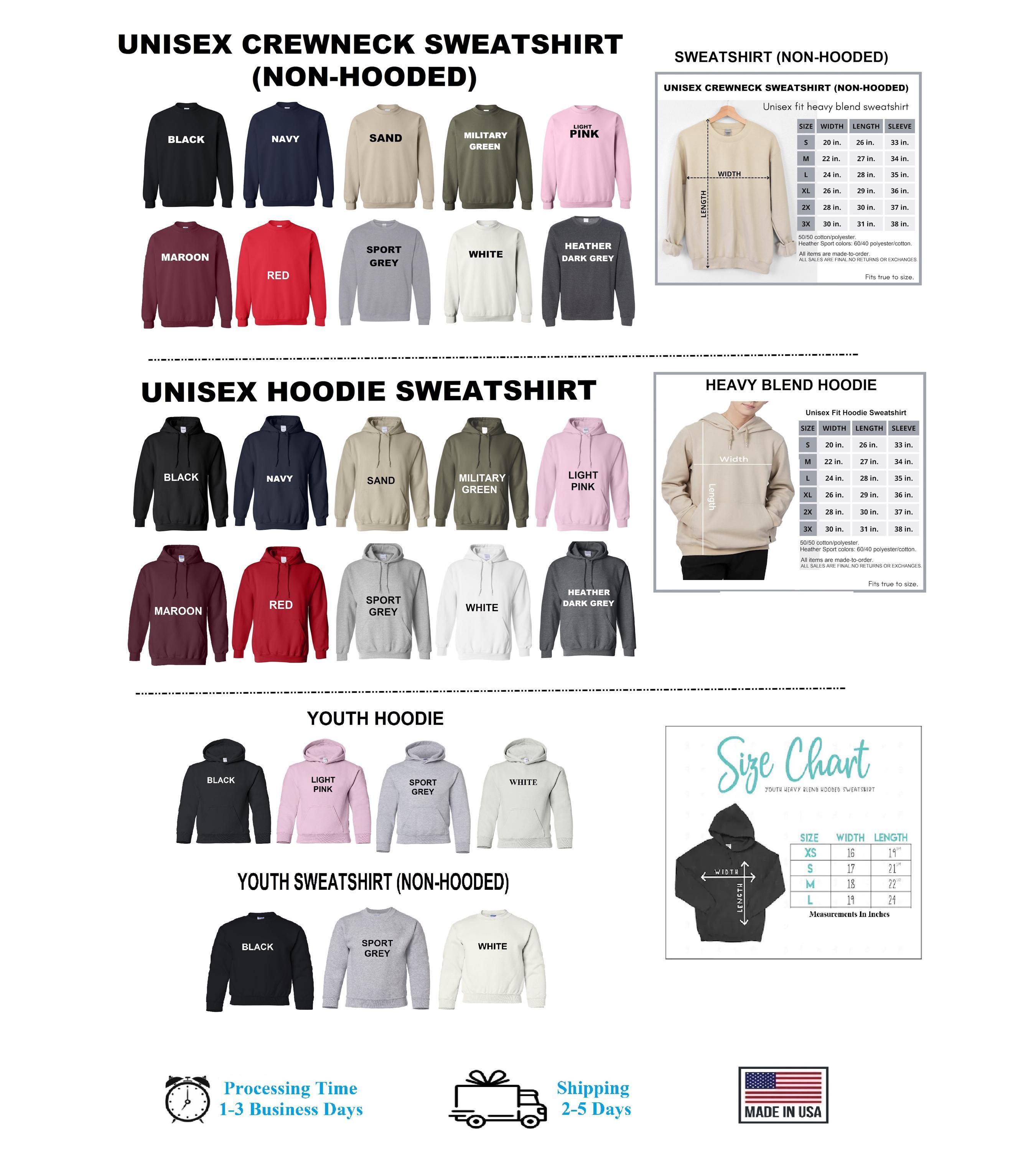 Sweatshirts (no hood) & Hoodies (with hoods), both styles are soft & comfy. They are UNISEX size, fitting men and women!