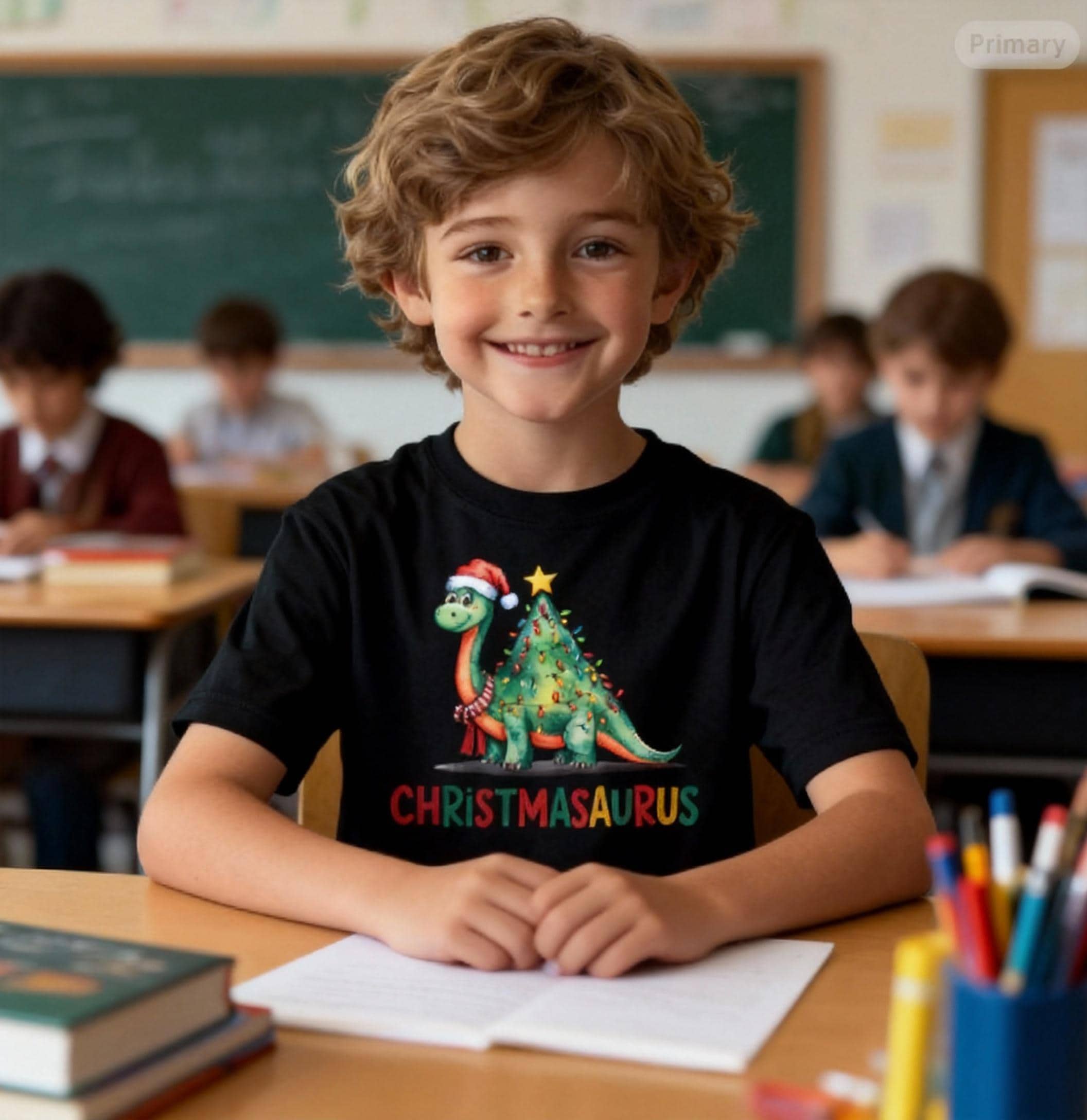 Christmasaurus Youth Shirt, Dinosaur Christmas Tree Rex Tee