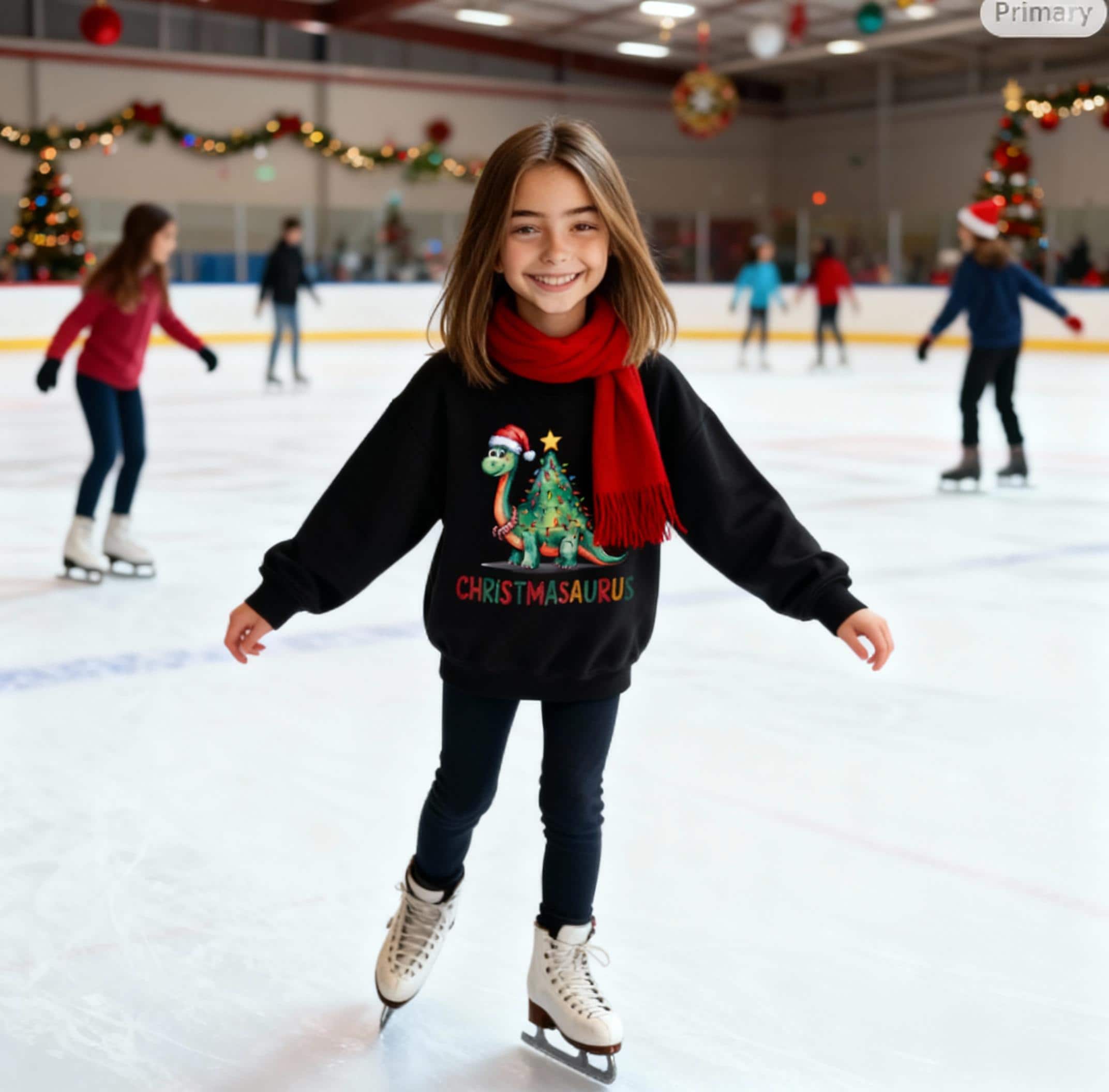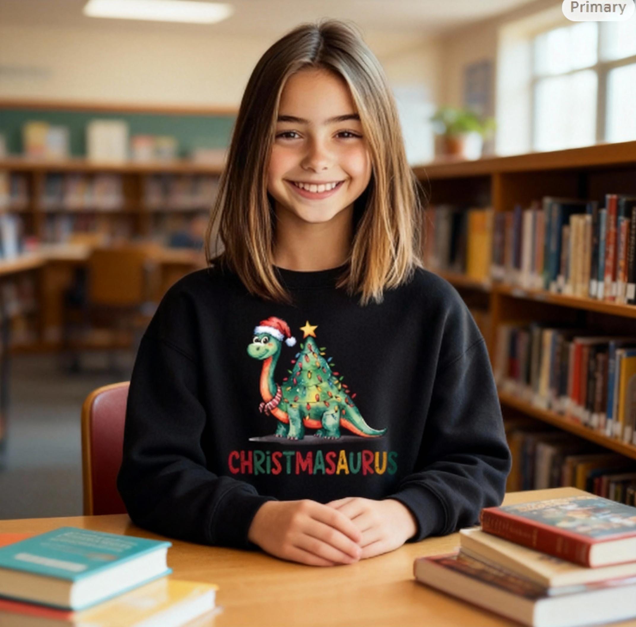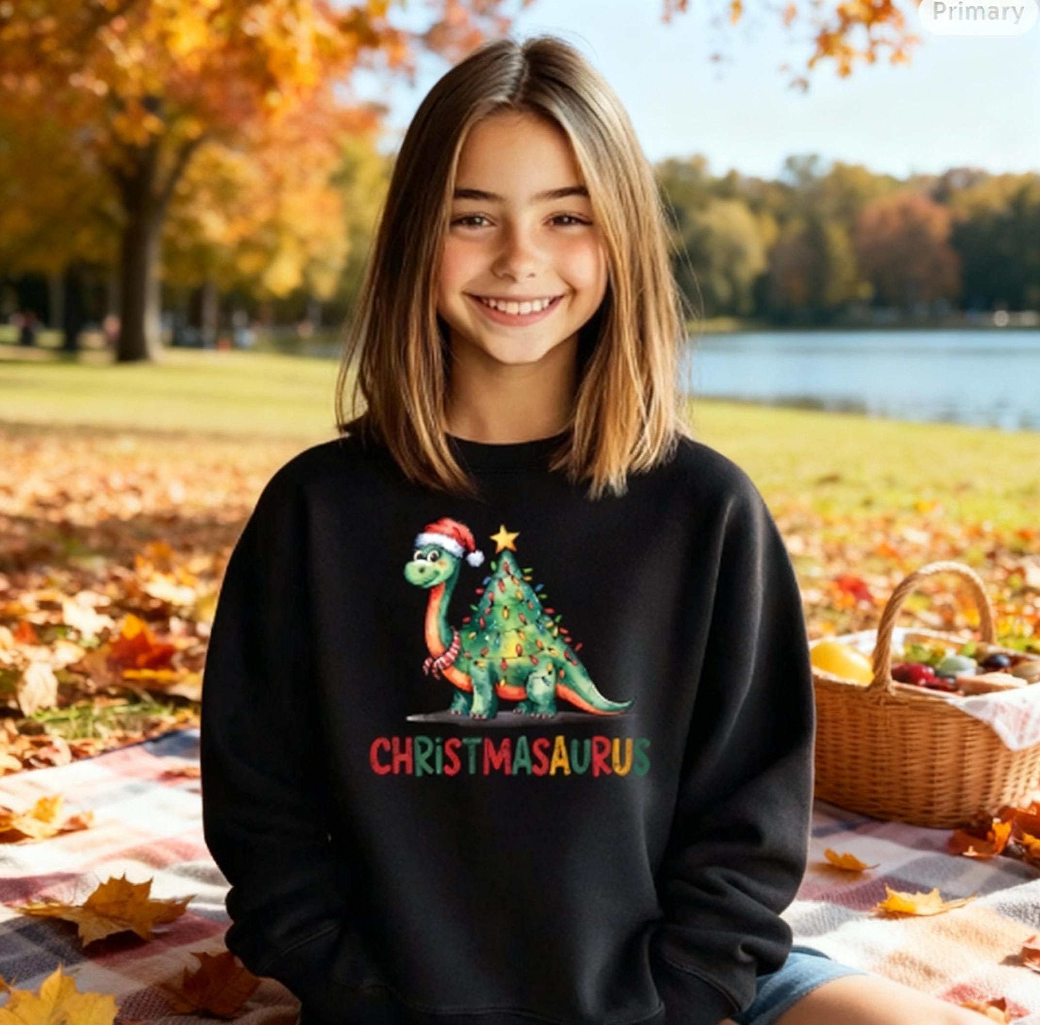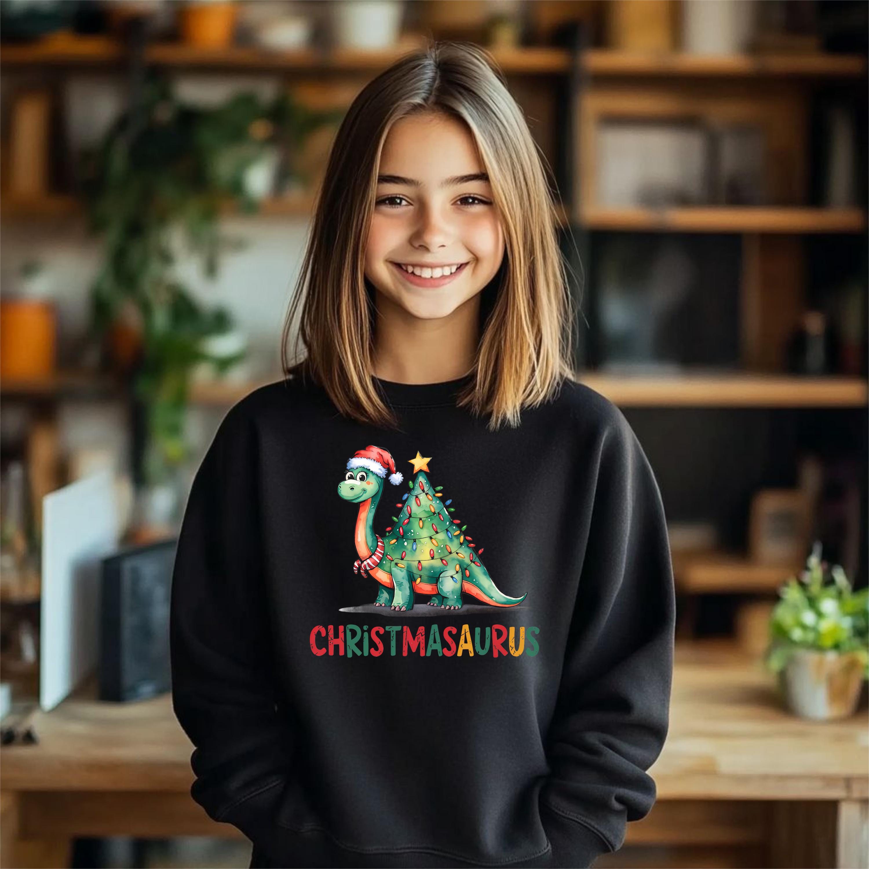 Christmasaurus Youth Sweatshirt, Dinosaur Christmas Tree Hoodie