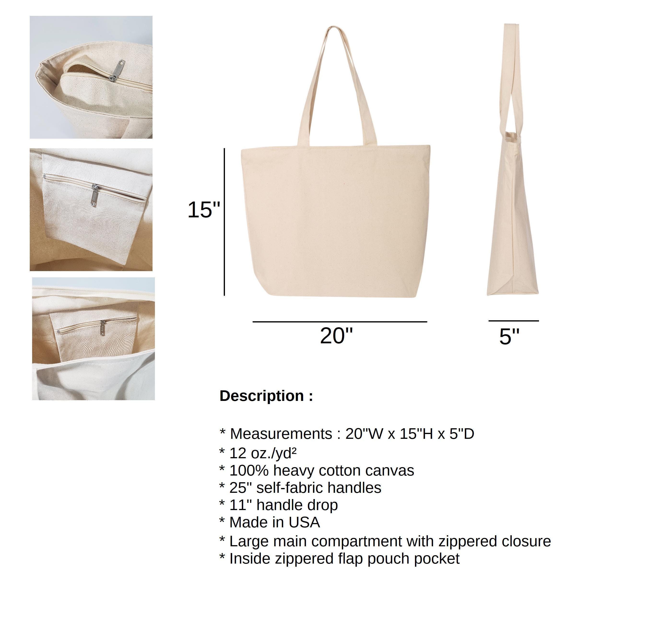 25L Tote Bag Measurements - 20"L x 15"H x 5"D