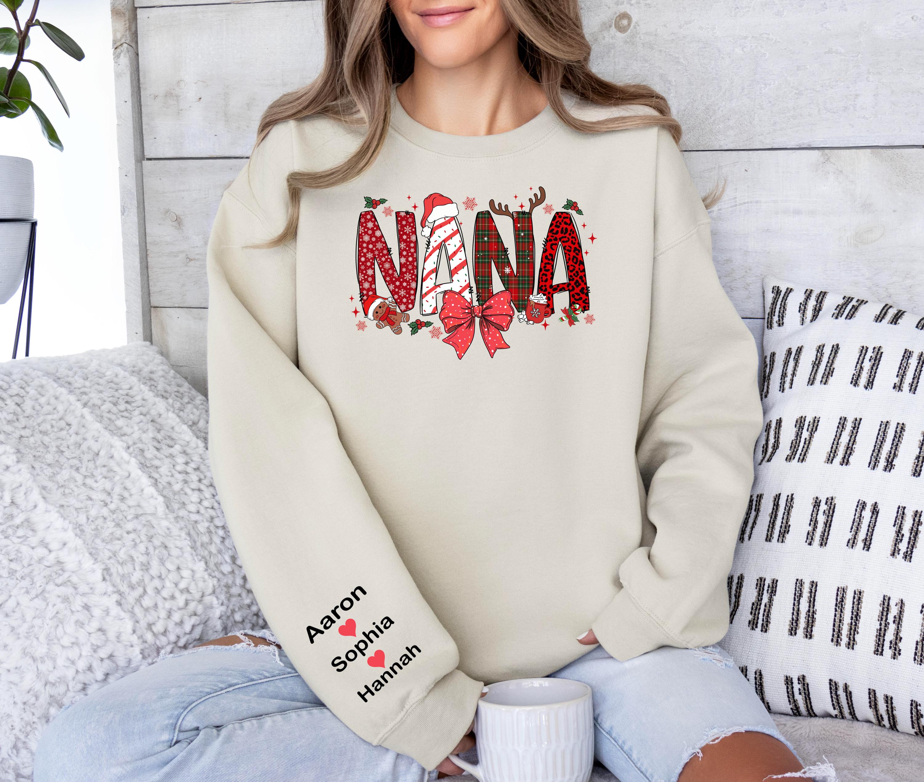 Personalized Christmas Nana Sweatshirt, Children Names Xmas Gift