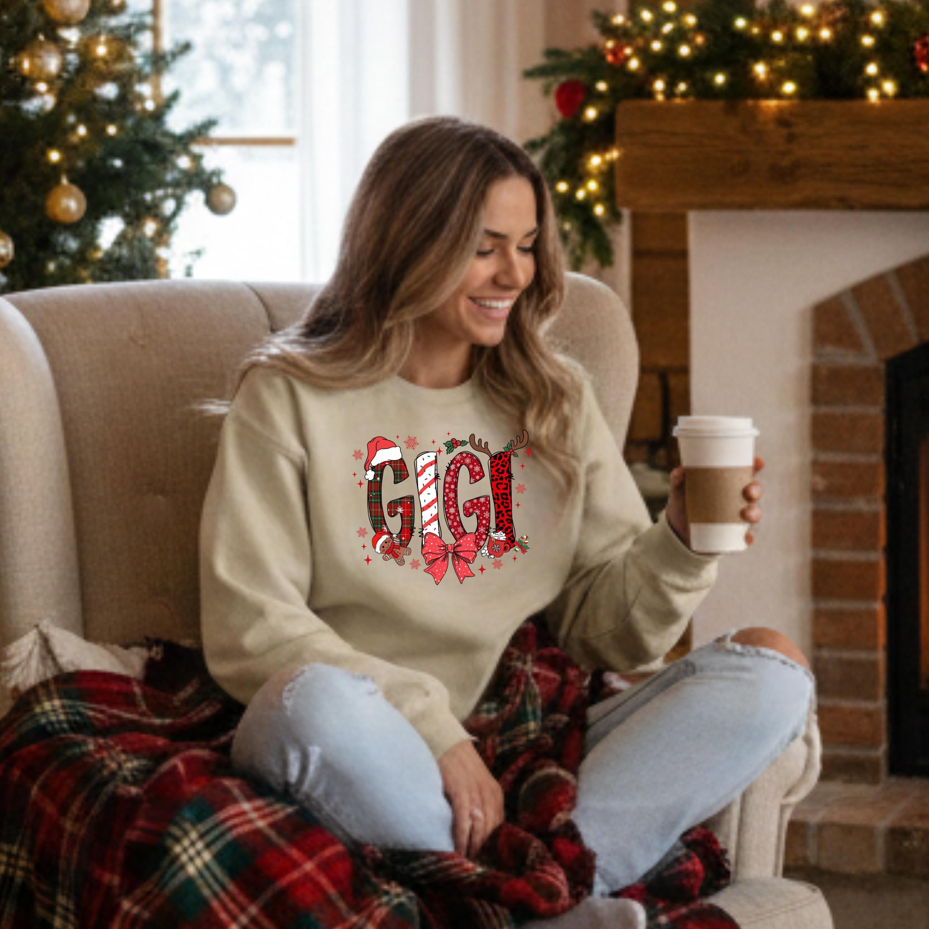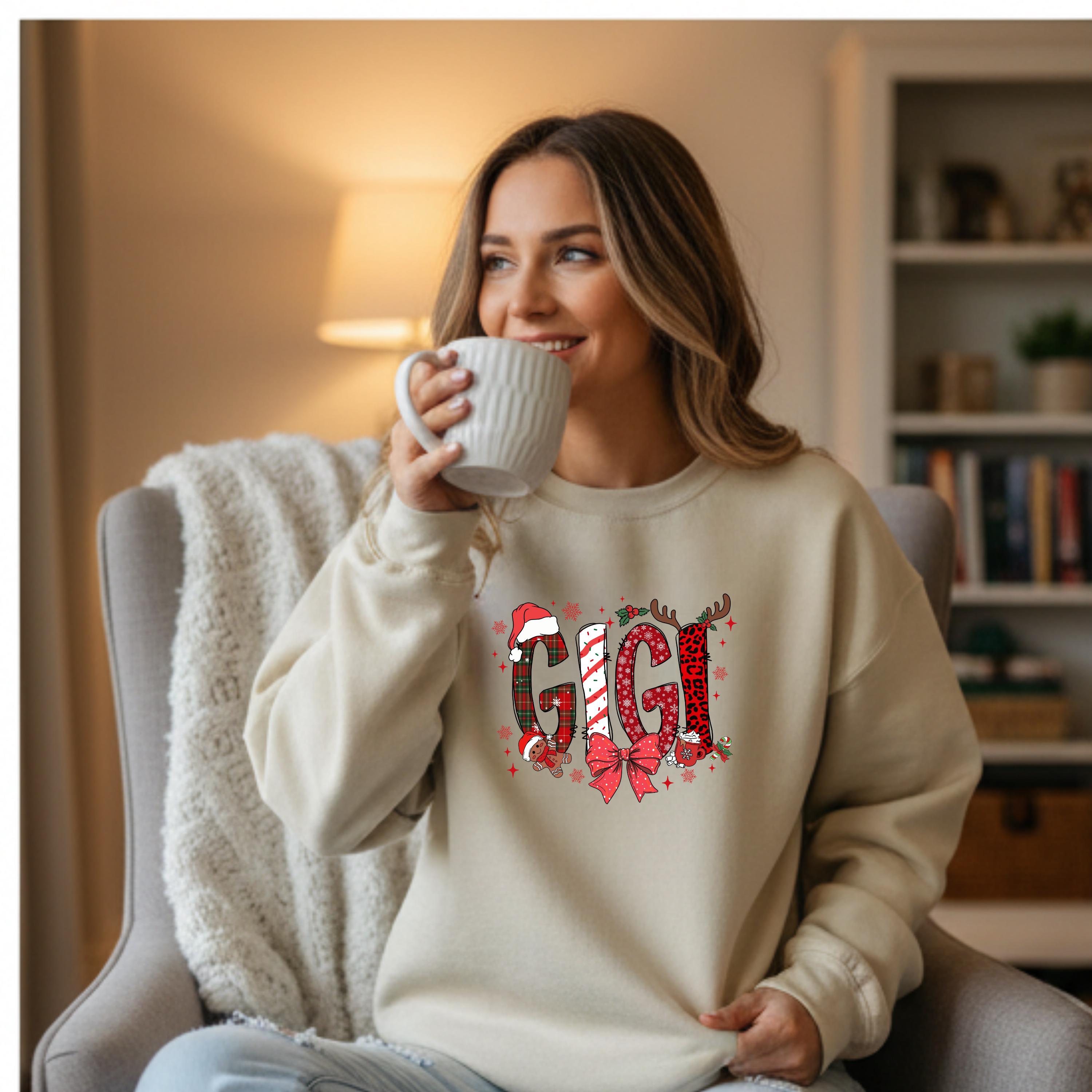 Custom Gigi Christmas Sweatshirt, Personalized Grandchild Names Xmas Hoodie