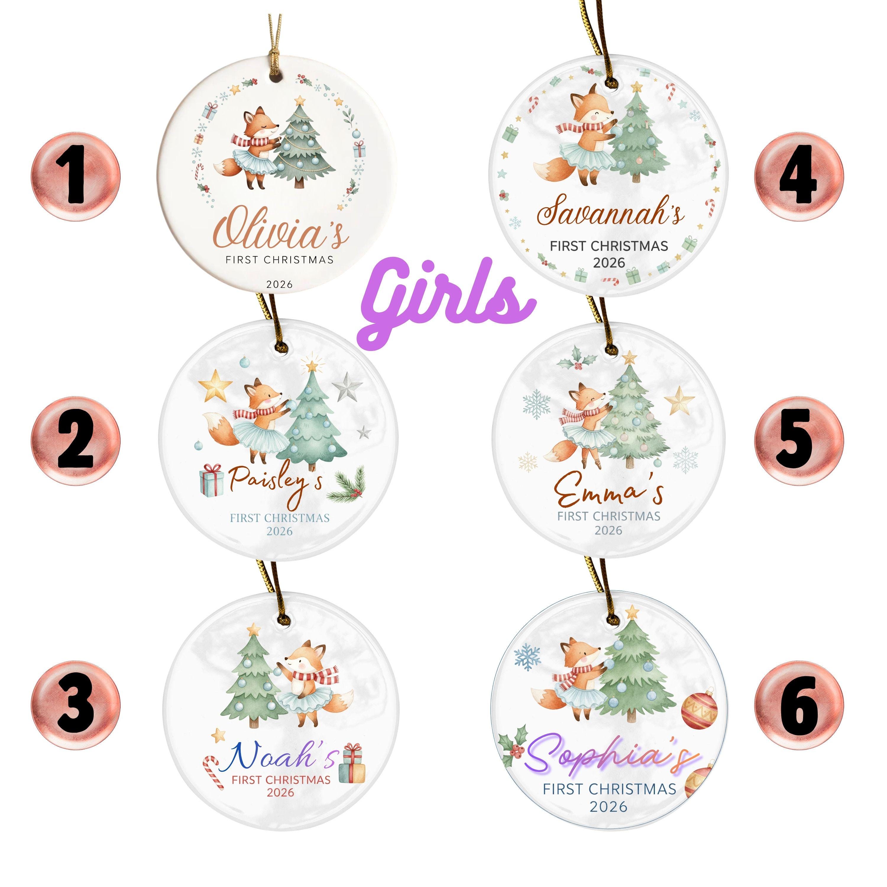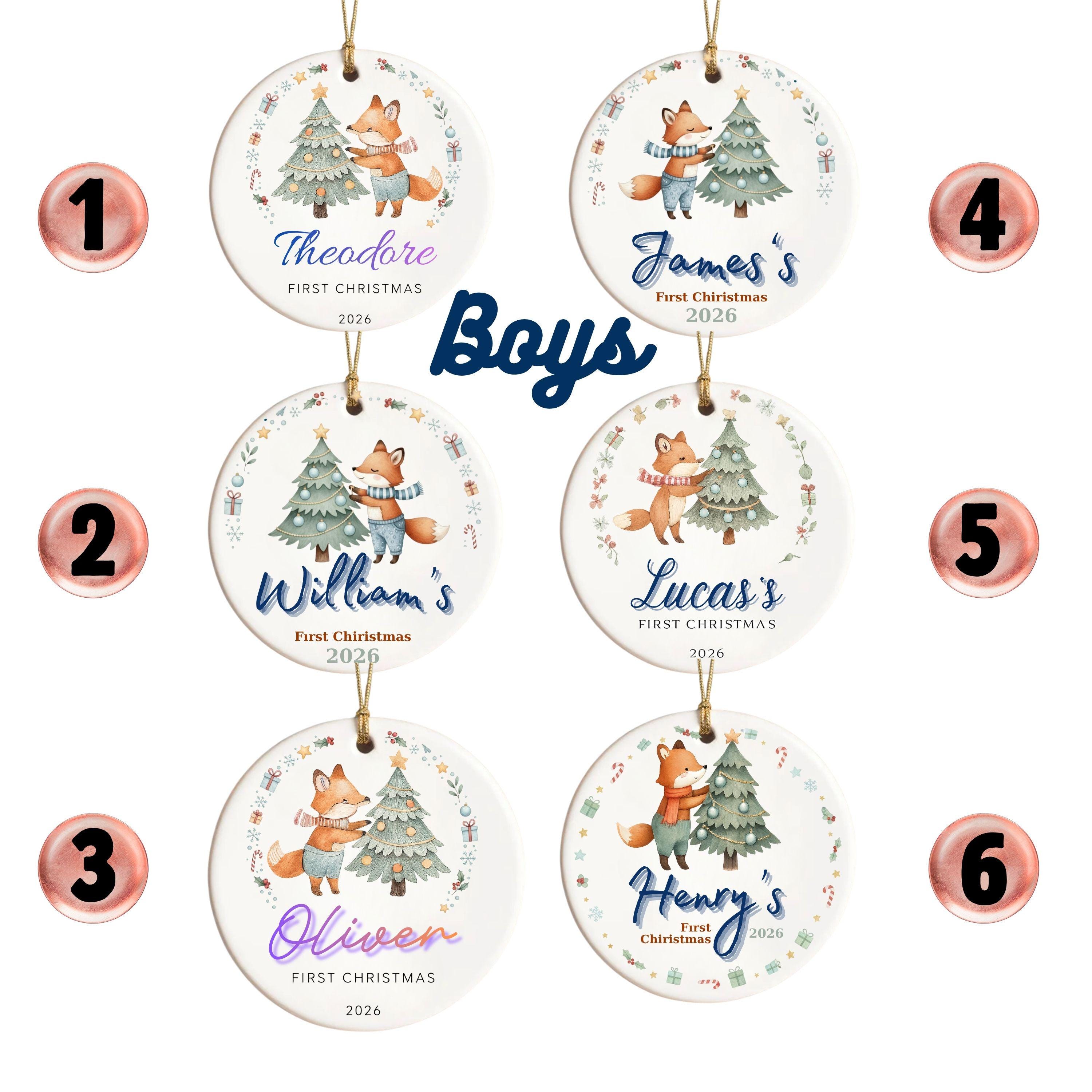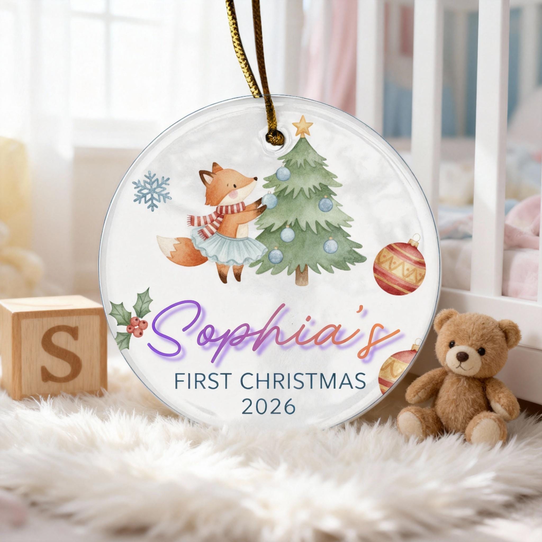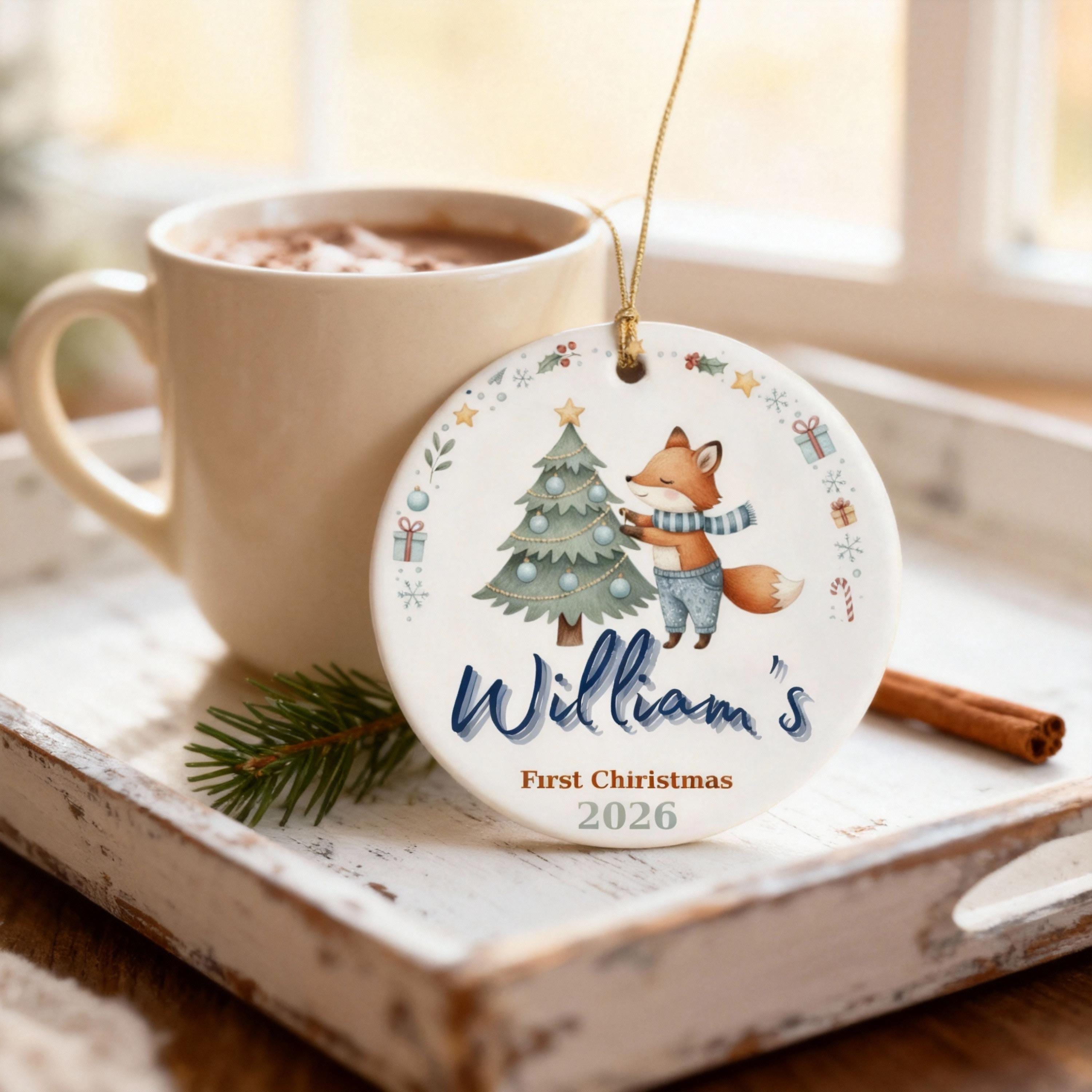 Personalized Baby's First Christmas Ornament, Fox Ceramic Bauble