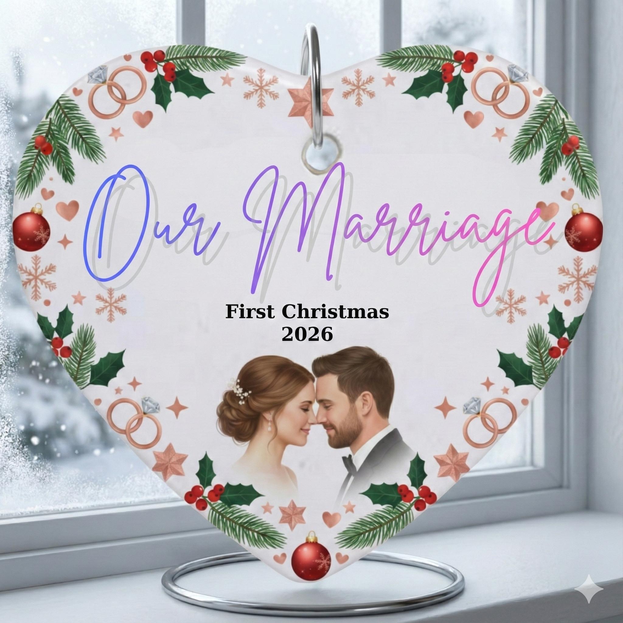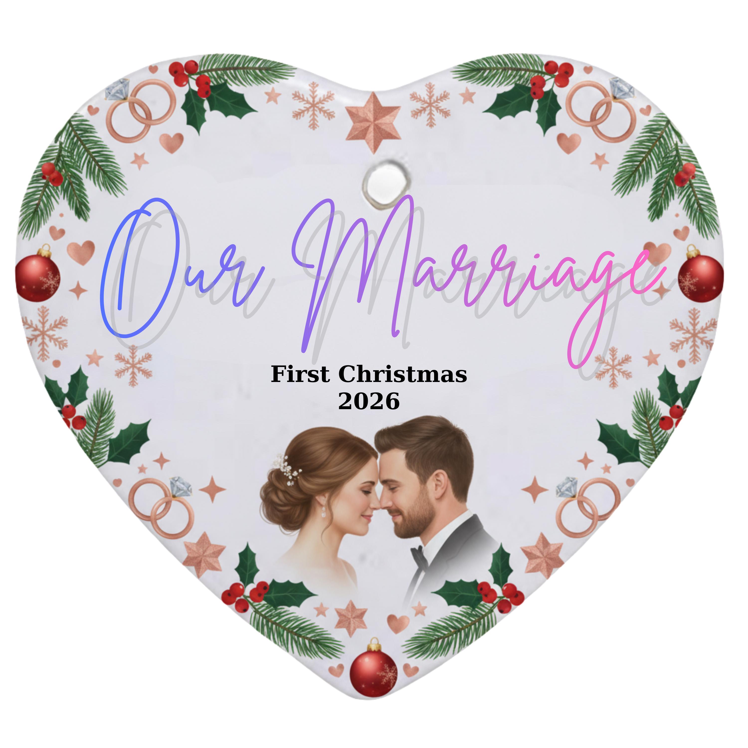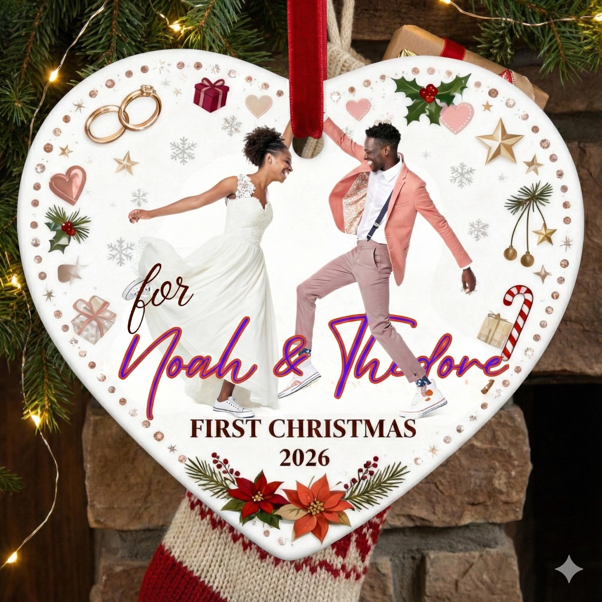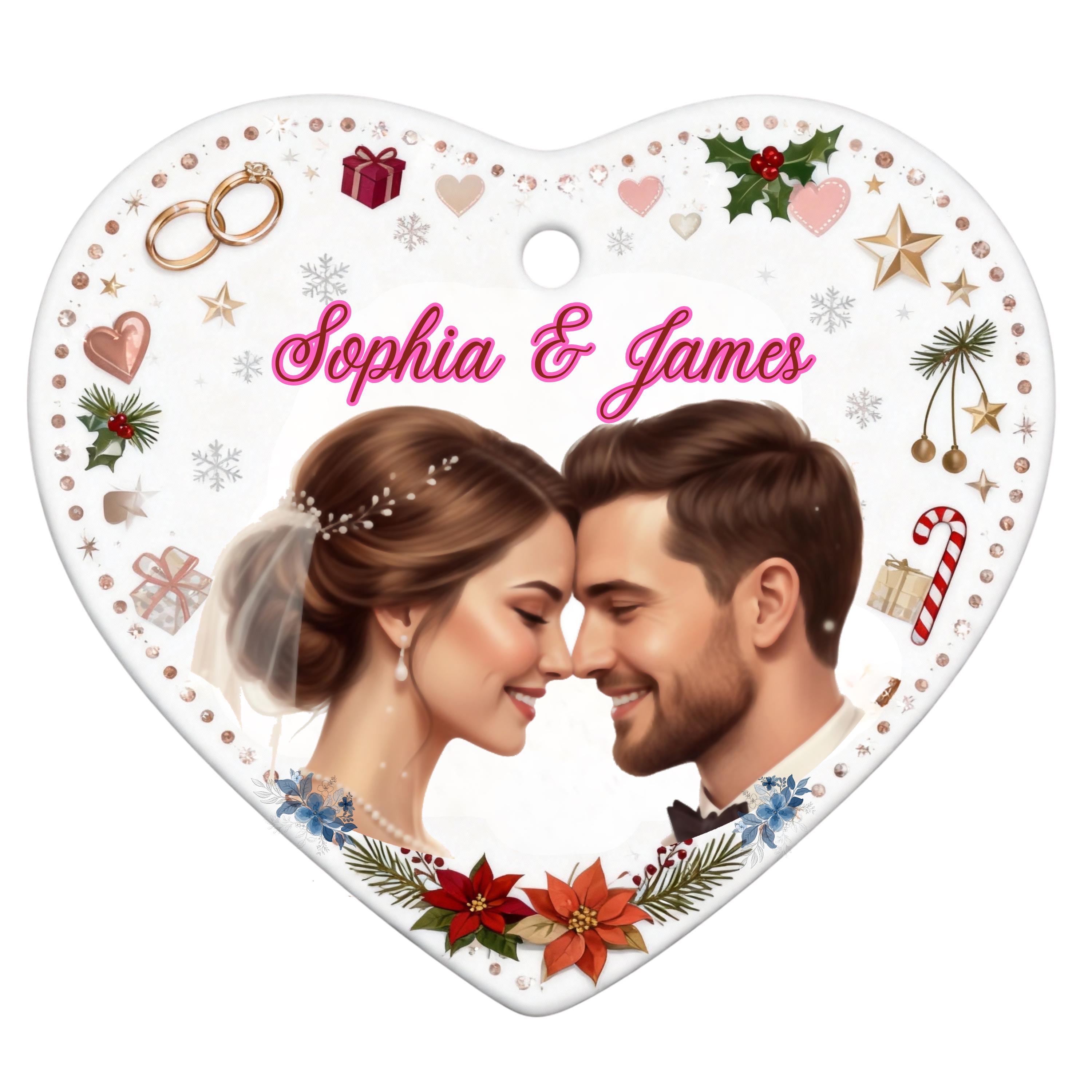 Personalized Heart Ornament, Couple Photo Keepsake, First Christmas Married