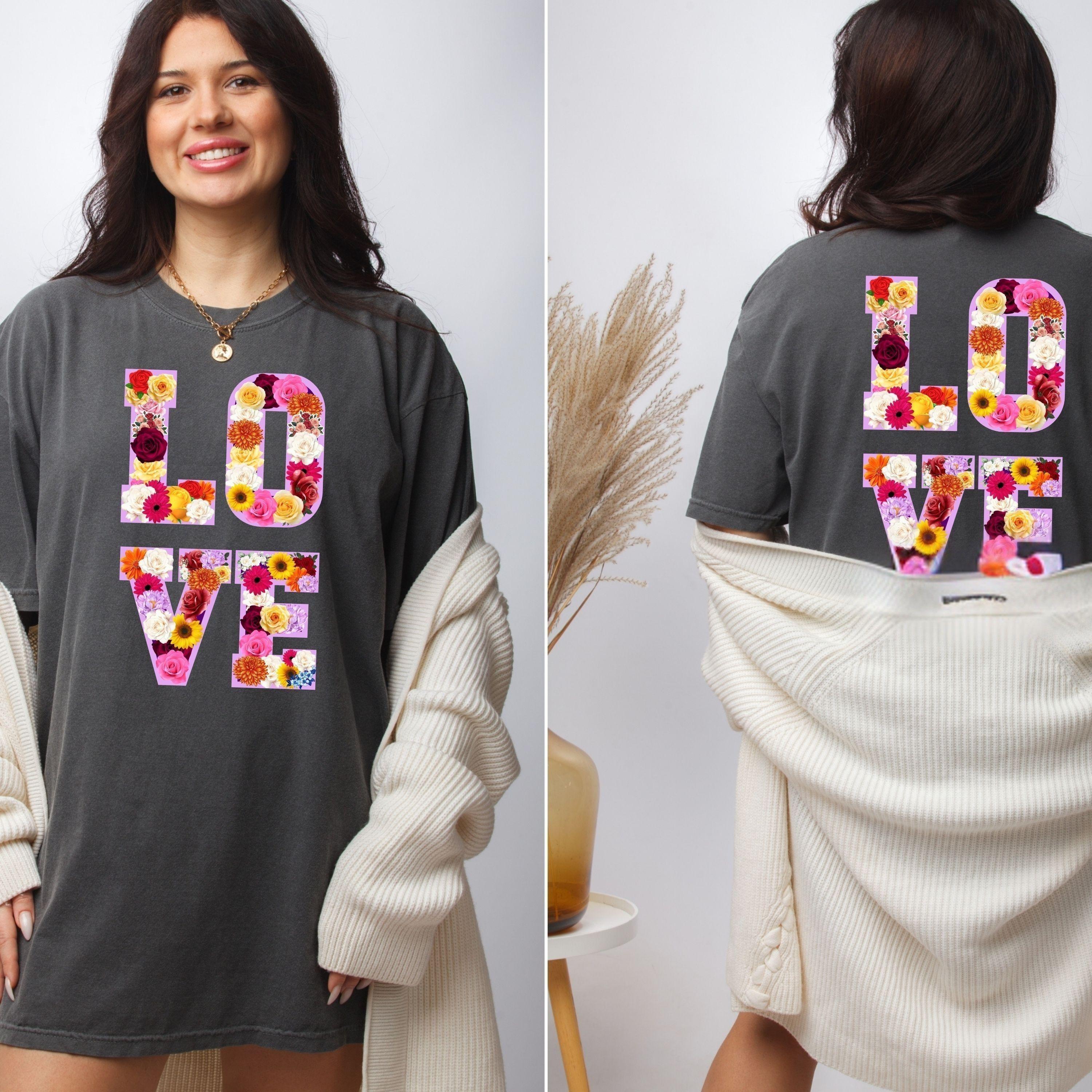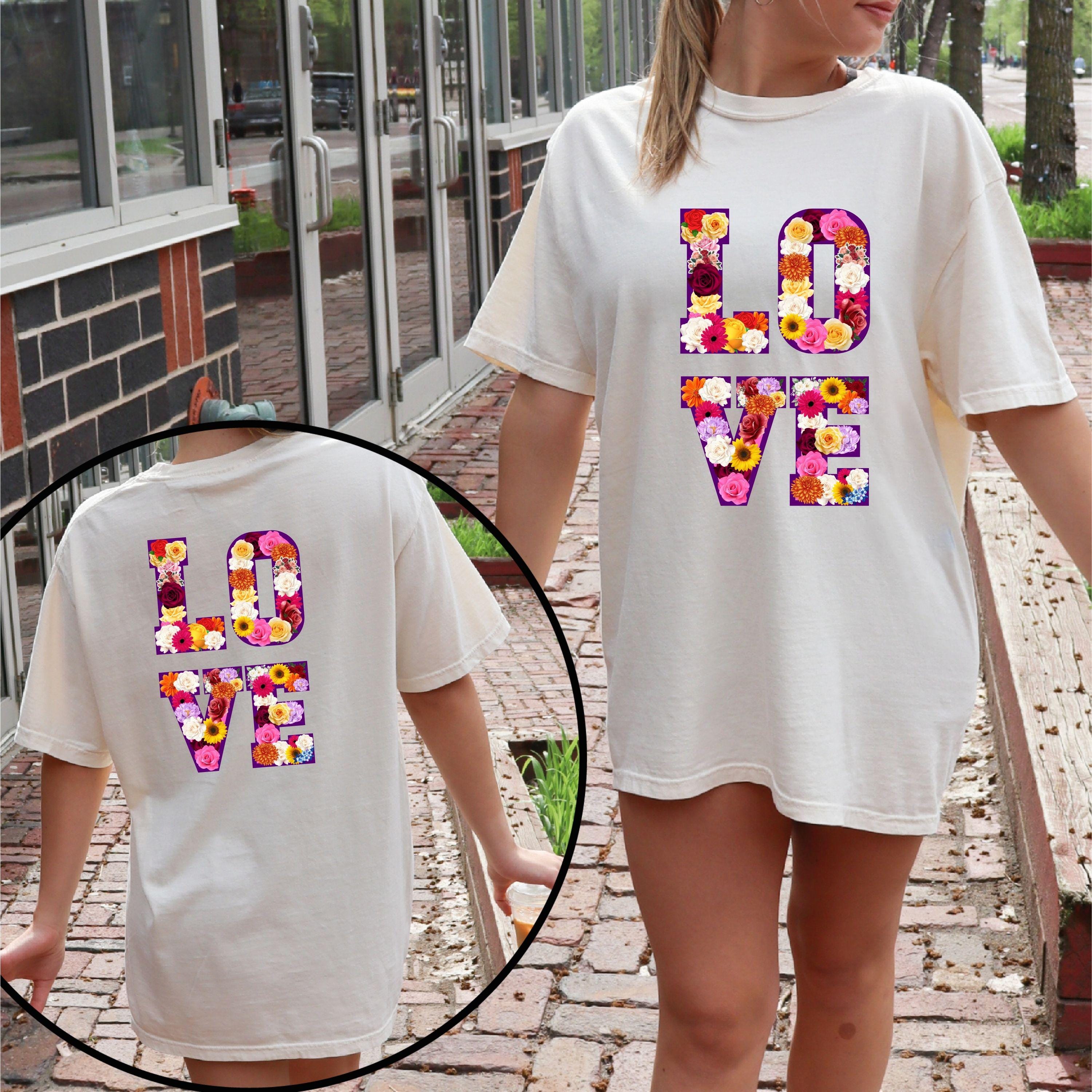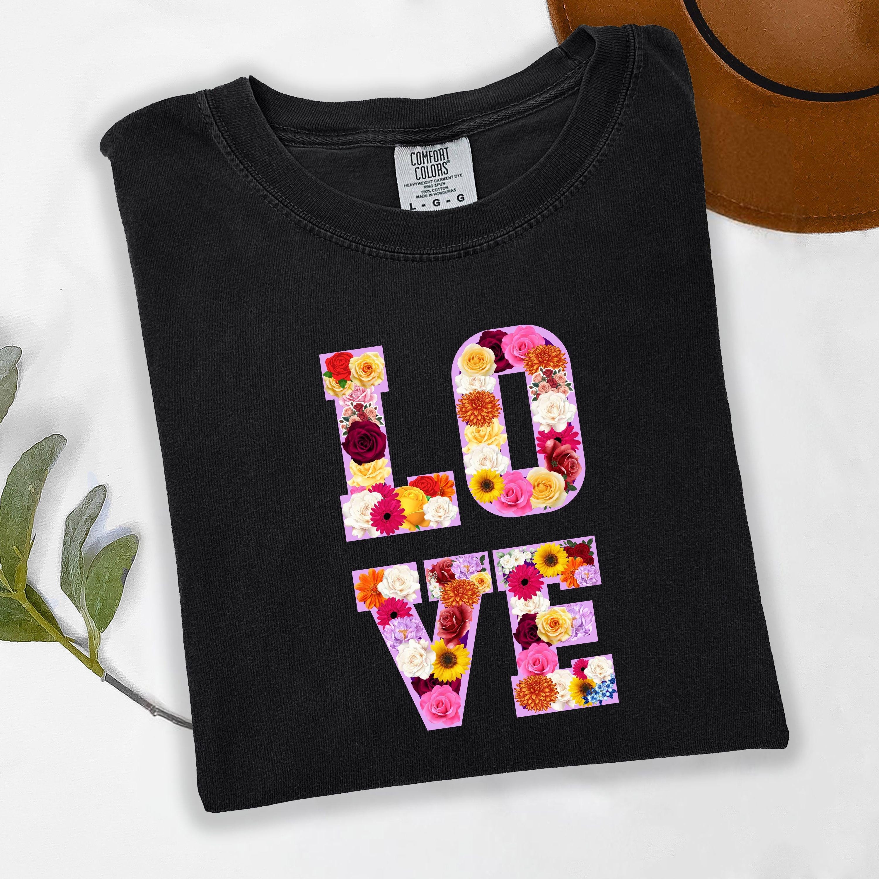 LOVE Graphic T Shirt, Floral Love Shirt, Unisex Valentine Shirt, Cute Love Design Tee
