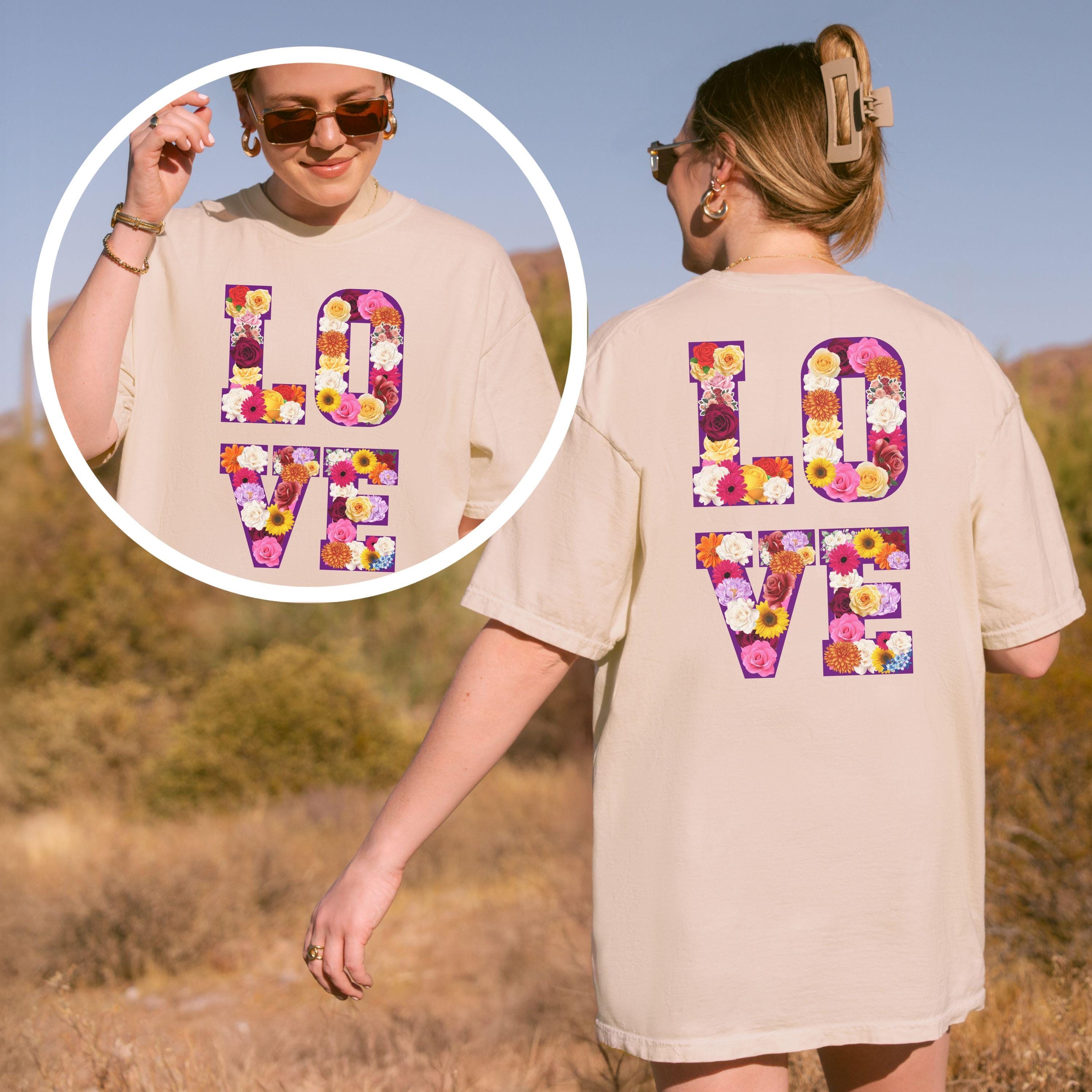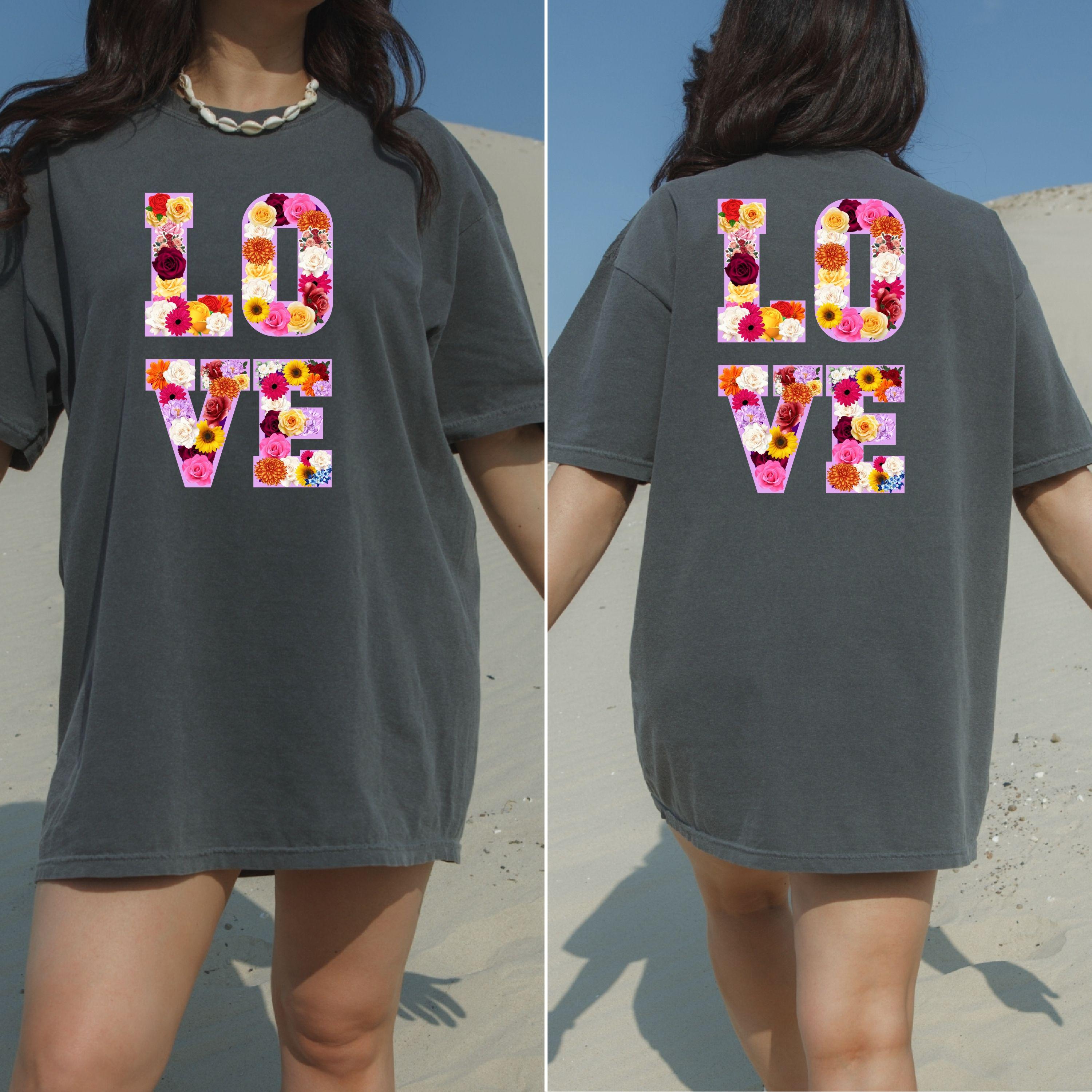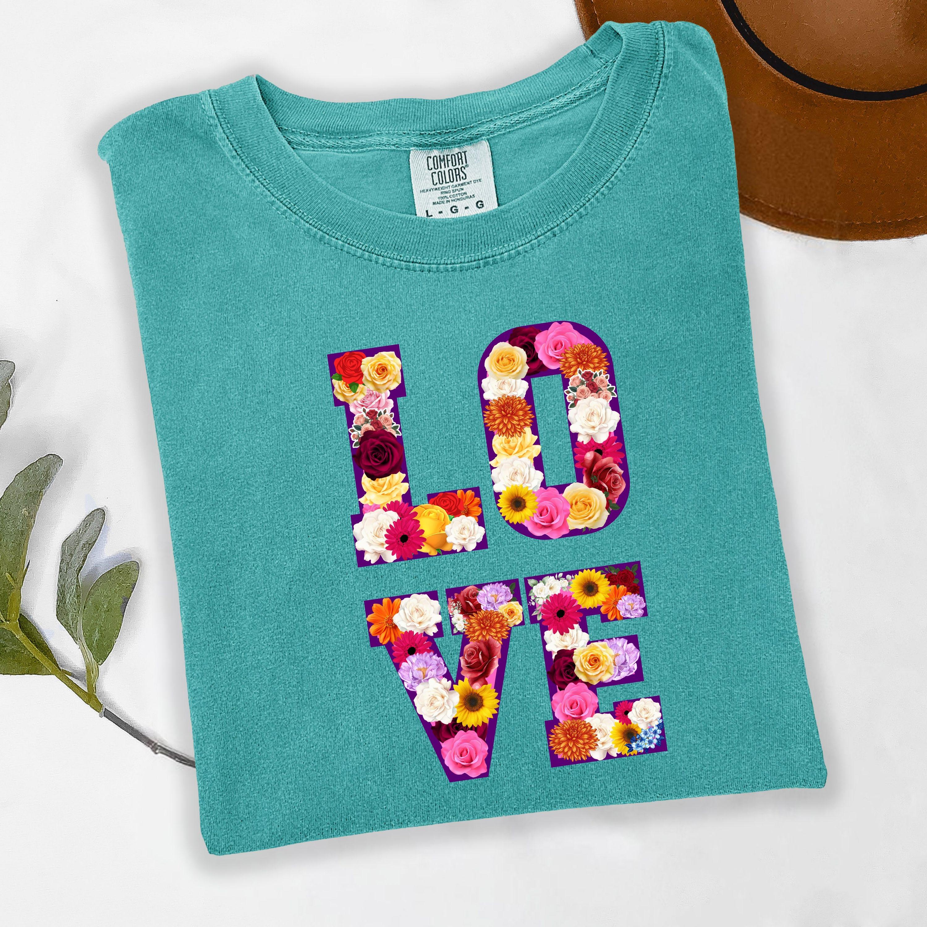 LOVE Graphic T Shirt, Floral Love Shirt, Unisex Valentine Shirt, Cute Love Design Tee