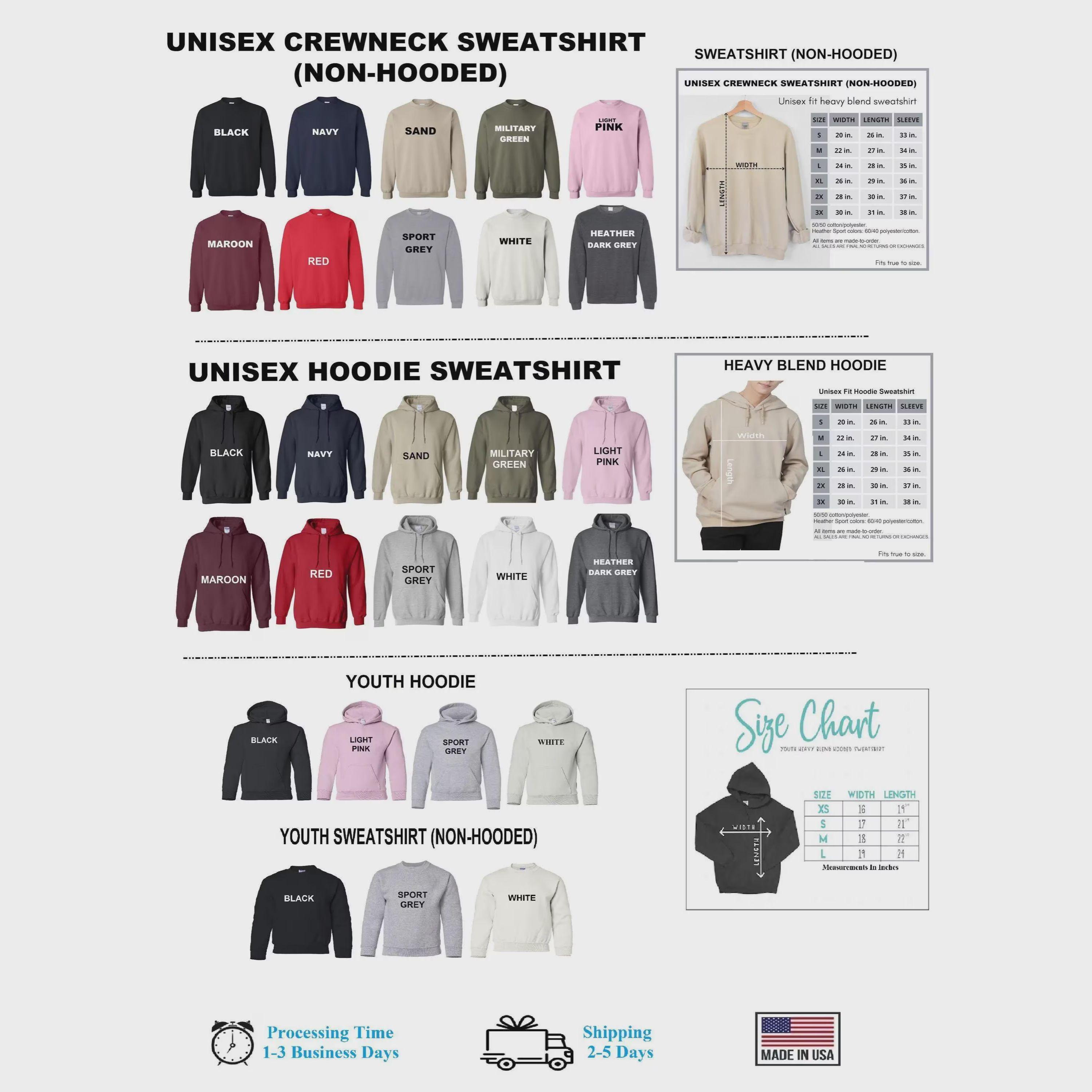 Sweatshirts (no hood) & Hoodies (with hoods), both styles are soft & comfy. They are UNISEX size, fitting men and women!