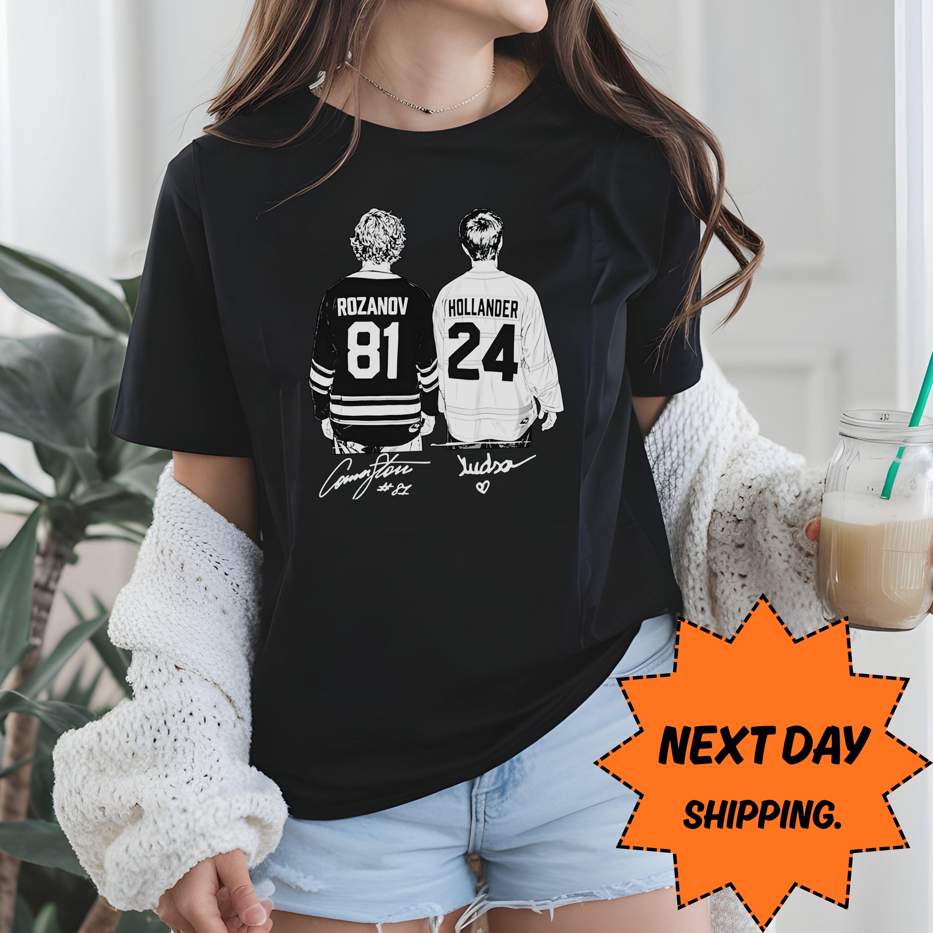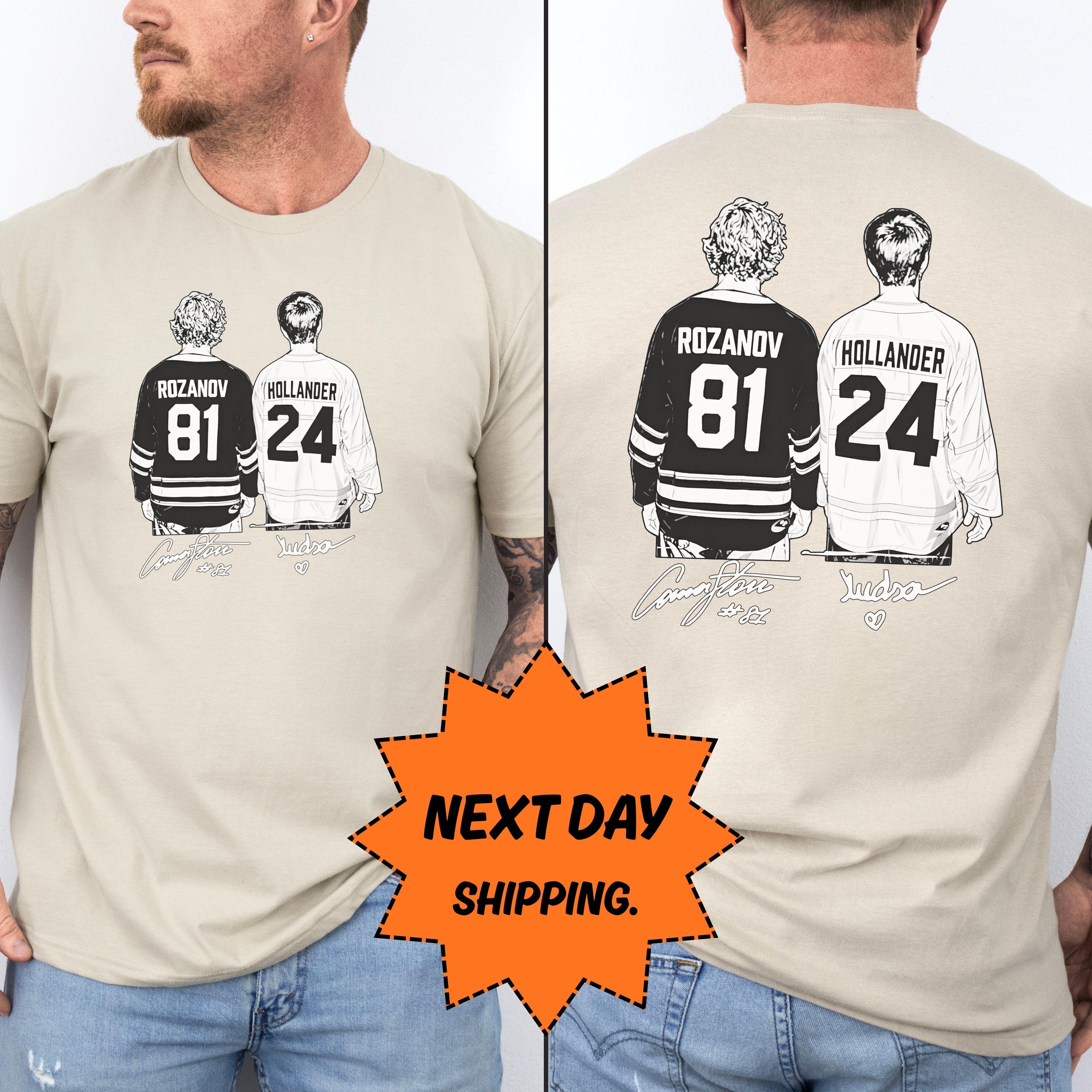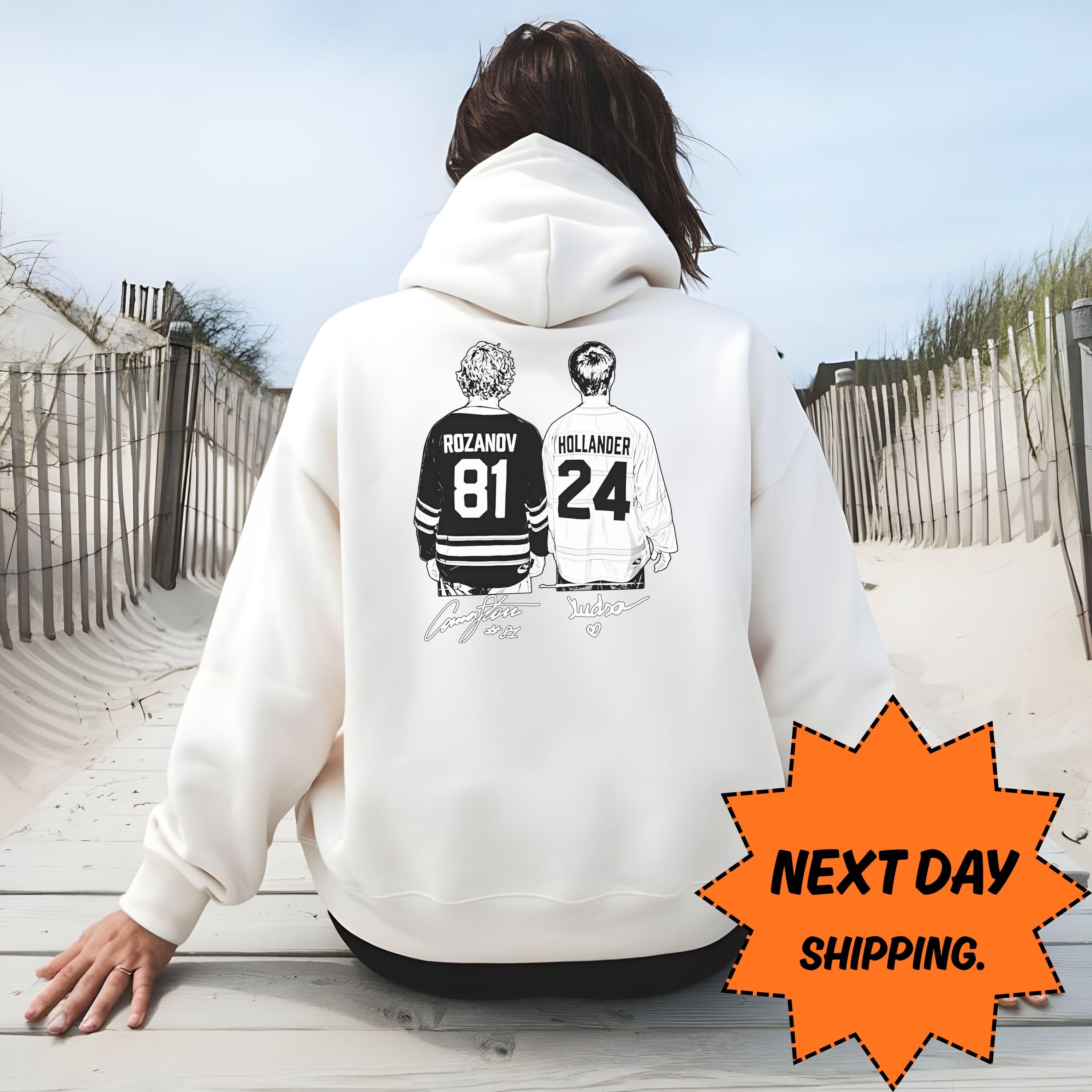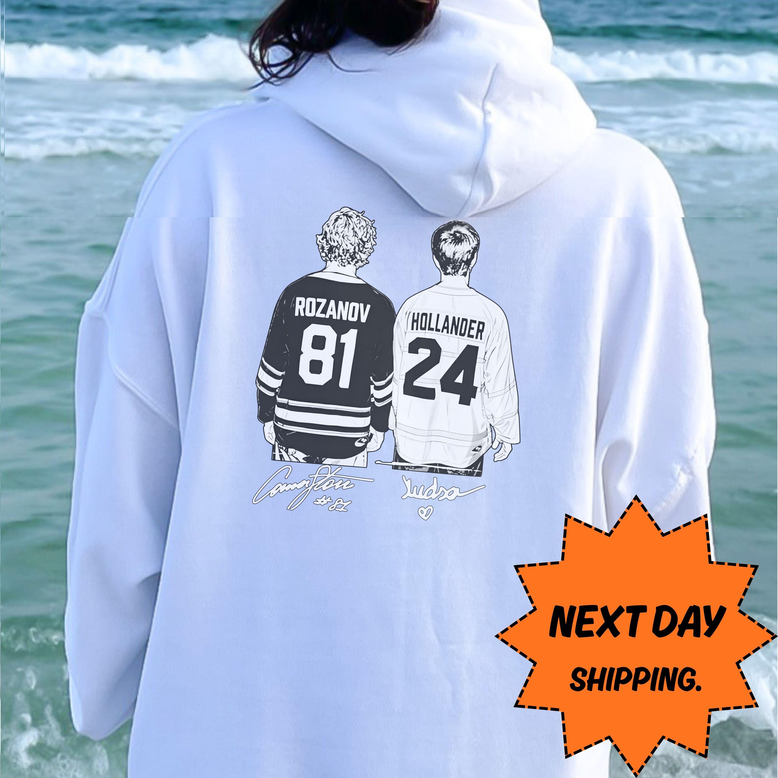 Rozanov & Hollander Hockey Hoodie, NHL Fan Gift With Player Art, Next Day Ship Hockey Jersey Tee