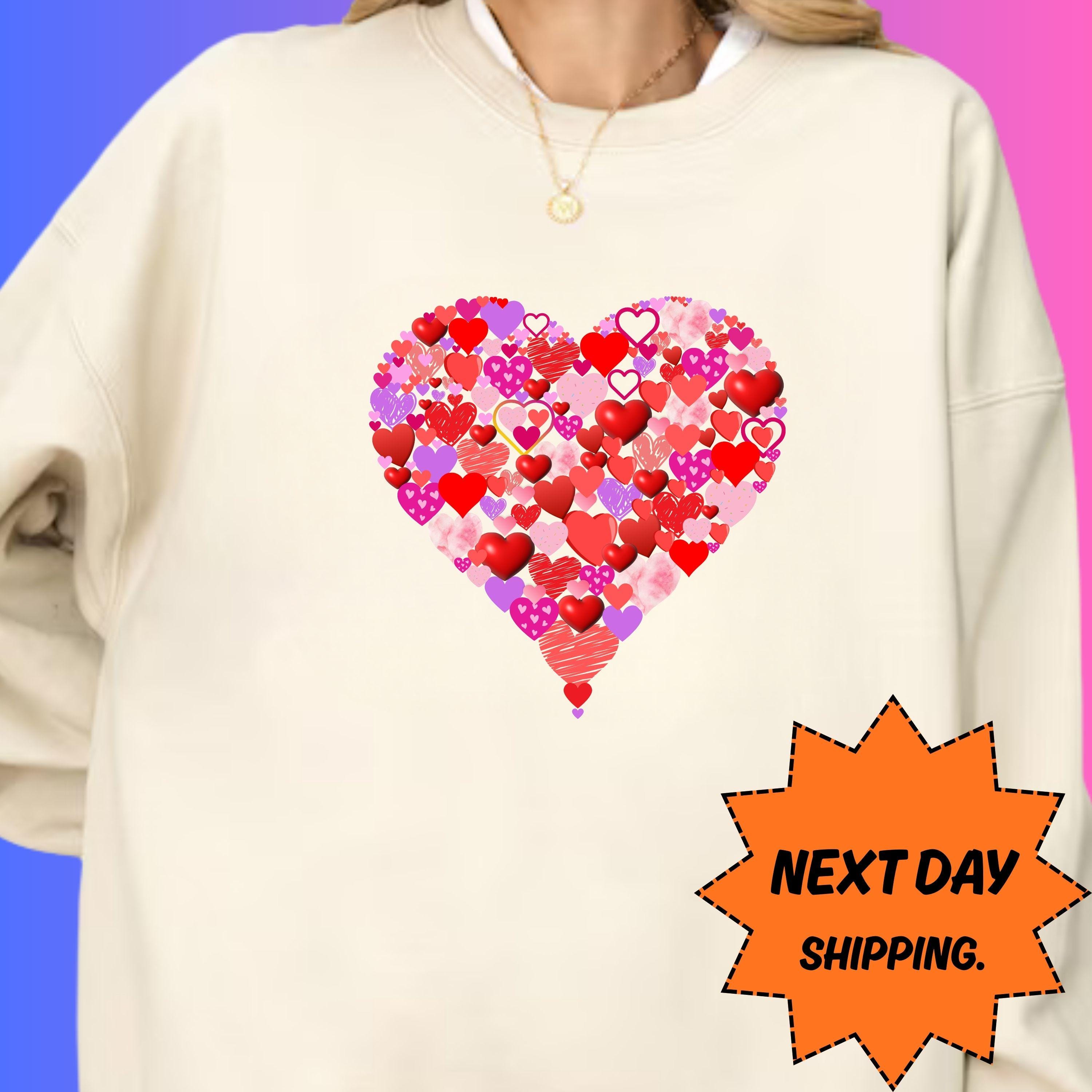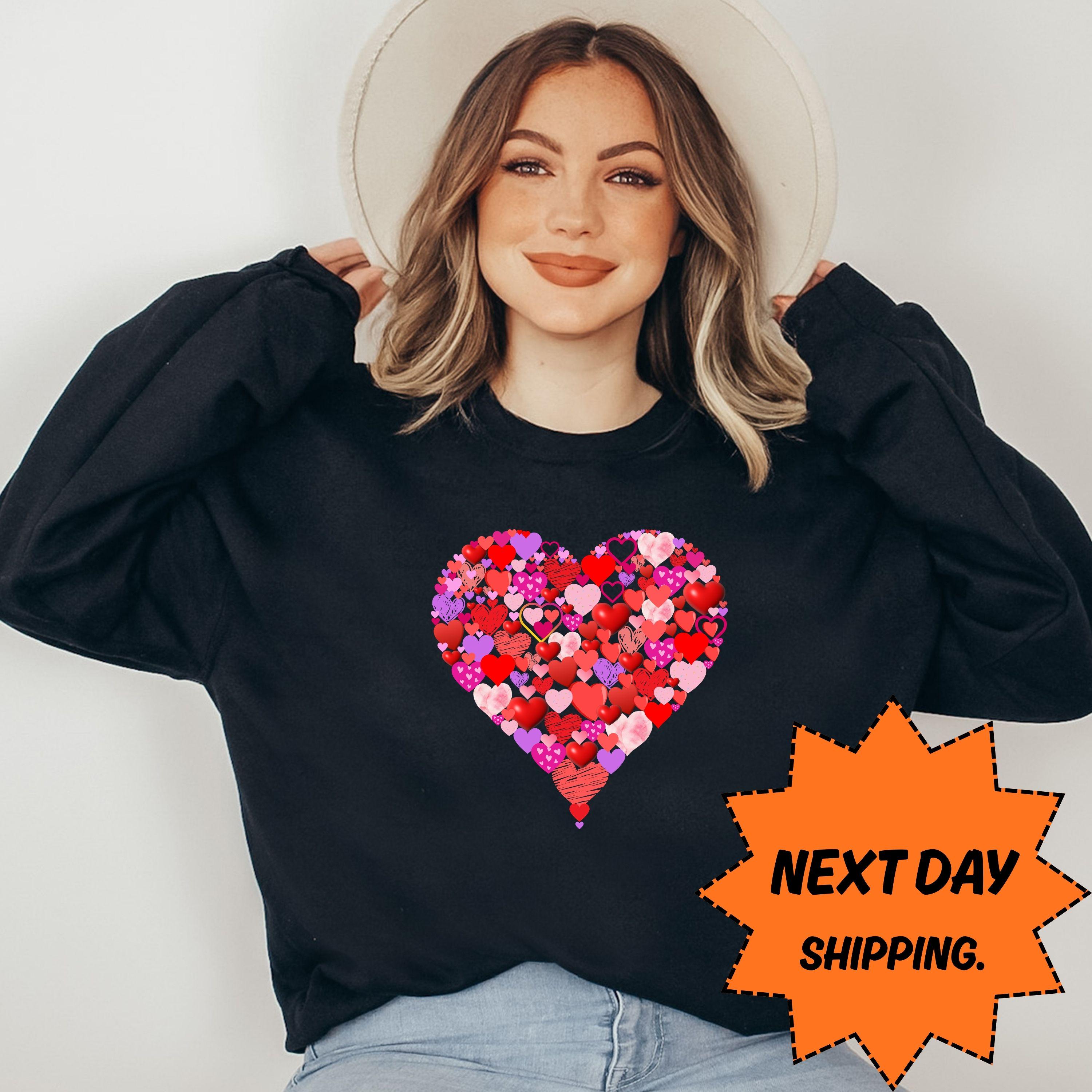 Valentine Day Heart Sweatshirt & Tee, Love Heart Valentine Shirt, Next Day Ship Romantic Hoodie,