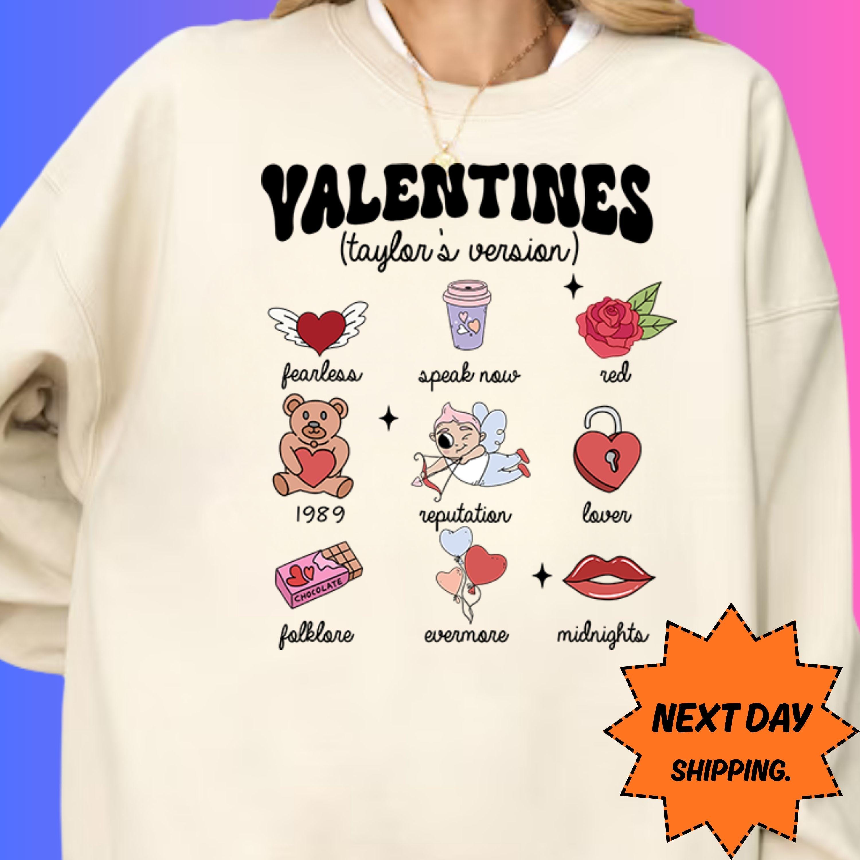 Celebrate Valentine's Day with this unique Taylor Swift-inspired album art print set! Featuring playful, fan-made redesigns of her iconic album titles like "Fearless," "1989," "Reputation," "Lover," "Folklore," "Evermore," and "Midnights" with a romantic Valentine twist. Perfect for Swifties looking for special, handmade-themed gifts. This digital printable art is ideal for cards, posters, or wall decor. Easy instant download, ready for printing at home or professionally. NEXT DAY SHIPPING available for physical prints. A must-have for any Taylor Swift fan this Valentine's season!